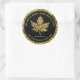 Gold Glitter maple leaf with black background for maple syrup round label with farm name, net weight, and address. You can edit the details according to your needs.