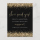 Gold Glitter Black She Said Yes Engagement Announcement. A little sparkle to let everyone know your exciting news on a convenient postcard in classic black and gold. Elegant gold faux glitter confetti borders are at the top and bottom and also on the back. She said Yes and Engagement are set in a modern handwriting style. Easily personalise the rest of the text to your own.