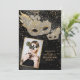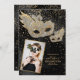 Gold Glitter Black Silk Masquerade Birthday Photo Invitation