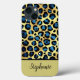 Gold Glitter Blue Leopard Print Name Case-Mate iPhone Case