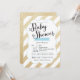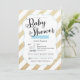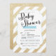 Gold Glitter & Blue Stripes Baby Shower Invite