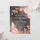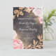 Soft blush pink flowers and gold glitter rustic country engagement party invitations.