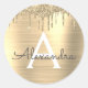 Gold Glitter Brushed Metal Monogram Name Classic Round Sticker