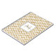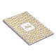 Personalised spiral notebook features elegant gold glitter chevron pattern with custom name in black handwriting font and monogram in matching gold shade in white square frame.