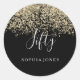 Gold Glitter Confetti Black 50th birthday party Classic Round Sticker
