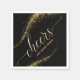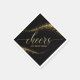 Add a personalised touch to a birthday or any other party with these personalised paper napkins. Design features modern script calligraphy metallic text and gold coloured confetti on a black background.