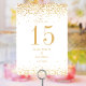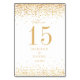 Let your tables twinkle as brightly as your love! These elegant table numbers feature a cascade of shimmering gold glitter confetti on a pristine white background. The perfect blend of modern simplicity and festive charm, they will effortlessly guide your guests to their seats while adding a touch of glamour to your reception.