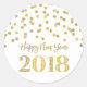 Gold Glitter Confetti Happy New Year 2018 Classic Round Sticker