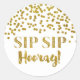 Gold Glitter Confetti Sip Sip Hooray Classic Round Sticker