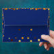 This is trendy and inexpensive envelope . It is gold glitter having blue background would give elegant appearance envelope.
