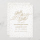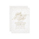 Tiny, glittery gold stars sparkle in confetti clouds around the edge of this beautiful white and gold Save the Date card, with a gold glitter effect script reading, "Save the Date". Fancy, chic and enchanting all at once. Original artwork by Colleen Michele. Please note, there is not a real gold glitter or gold leaf effect on the stars and script; no actual glitter, gold leaf or metallic ink will be used in this invitation.