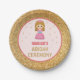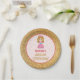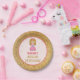Cute aqiqah party paper plates featuring an adorable little princess with modern typography on a pink and gold background.