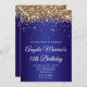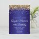 Gold Glitter Deep Blue Gradient 18th Birthday Invitation