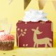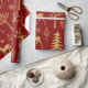 Modern and festive golden glitter deer and trees on a red background