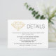 Abstract geometric gold glitter diamond jewel trendy wedding details insert card. This elegant design displays a diamond made of FAUX gold glitter. Use it as reception, directions or accommodations card, for your website or registry etc. On the back there is the same abstract diamond.