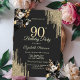 Gold Glitter Drips Black Roses Dark 90th Birthday Invitation