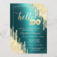Gold Glitter Drips Green Metallic 100th Birthday Invitation