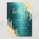 Gold Glitter Drips Green Metallic 70th Birthday Invitation