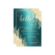 A modern, chic, and glamorous with glitter drips on a green metallic background.