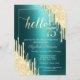 Gold Glitter Drips Green Metallic 75th Birthday Invitation