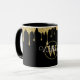 Chic gold glitter drips, script name, and gold monogram on a black background mug. You can personalise the name, monogram and customise the font and colours to create your own unique design. Designed by Thisisnotme©