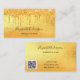 An elegant and glamourous business card on a faux gold looking background decorated with faux glitter drips, paint dripping look on front. Elegant white hand lettered style script. Personalise and add Your name, title, contact info and your own QR code to your website address.