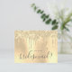 This modern invitation design features faux gold dripping glitter metallic texture and elegant calligraphy font.