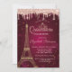 Gold Glitter Eiffel Tower Tiara Drips Quinceañera Invitation