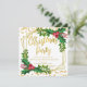 Gold Glitter Festive Holly Frame Glitter Christmas Invitation