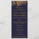 Gold Glitter Flowers and Dark Blue Wedding Program Programme