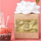 This elegant product label for cosmetic bottles features a faux gold background with a faux gold glitter foil border. This label contains space for your product name, business name, product weight, ingredients, instructions, social media, and business address.