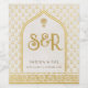 Transform your wedding wine bottles into elegant keepsakes with these personalised labels. Featuring a stunning gold glitter marigold and lotus flower design, an auspicious symbol of prosperity and joy in Indian and Hindu weddings, these labels add a touch of tradition and sparkle to your celebration. Each label is crafted on a charming antique white paper texture background, offering a touch of vintage elegance. Personalise them with the couple's beautiful monogram, names, and the location and date of their wedding, creating a unique and memorable memento for guests to cherish long after the last toast. These personalised wine bottle labels are the perfect way to elevate your wedding reception decor and add a special touch to every bottle shared on your special day.