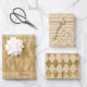 Add a shiny touch under your Christmas tree with this custom set of matching gold glitter pattern wrapping paper sheets. Sheet set has a background of faux golden glitter and foil chequered tartan, vintage script, and harlequin diamonds. There are also areas for an optional monogrammed family initial and last name or other text.