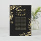 These elegant gold table number 1 seating chart cards are perfect for a simple wedding. feature a simple yet elegant design with gold script calligraphy on a black background with a frilly gold faux foil floral filigree in the corners.