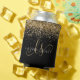 Glam Gold Glitter Elegant Monogram Can Cooler. Easily personalise this trendy chic can cooler design featuring elegant gold sparkling glitter on a black background. The design features your handwritten script monogram with pretty swirls and your name.