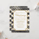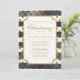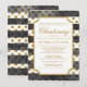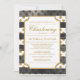 Here are modern christening invitations with glamour! Invites have a white ornamental frame and gold coloured text details atop watercolor style black horizontal stripes over faux gold glitter polka dots. You can customise or change the information to your liking. The design looks best with rounded corners style paper option.