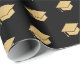Gold Glitter Graduation Cap Pattern Black Wrapping Paper