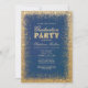 Gold & Glitter Graduation Party Invitations. Faux Gold Foil glitter on blue background. Glowing text. Easy to customise.