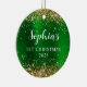 Gold Glitter Green Faux Foil 1st Christmas Photo Ceramic Tree Decoration