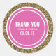 Gold Glitter Customisable Thank You Label Round Stickers With Hot Pink and White Circle Designs. Many other Colours Available. Can Be Used for a variety of events from Weddings To Birthdays and other events of your choosing.