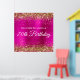 Gold Glitter Hot Pink Square 70th Birthday Welcome Poster