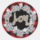Gold Glitter Joy Wreath Holiday Red Buffalo Plaid Classic Round Sticker