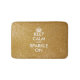 Faux Gold glitter keep calm and sparkle on bath mat. Personalised keep calm and your text non slip bath mat. Create your own funny keep calm and carry on parody rug for chic bathroom. Vintage typography template design with elegant crown. Other Cute keepcalm examples: Keep calm and party on. Keep calm and dance on. Keep calm and sparkle on. Original keepcalmandcarryon gift ideas for men women and kids. Make your own humourous quote for yourself, friends and family, birthday, wedding party etc. Unique and trendy home decor products. Custom background colour. Available in small medium and extra large big size. Stylish interior decoration with golden background texture. Shiny sparkly sparkles and glittery glimmers.