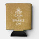 Faux gold glitter keep calm and sparkle on can coolers Make your own funny keep calm and carry on parody design. Vintage keepcalmandcarryon typography with crown. Create your own humourous keepcalm spoof with this template. Customisable background colour. Fun favour idea for glamourous wedding, birthday party, bachelorette etc. Sparkly sparkles and glittery glimmers design. Double sided golden print.