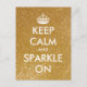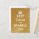 Faux gold glitter Keep calm and sparkle on postcards. Customisable Keep calm and carry on postcard design. Vintage keepcalm typography template with crown.