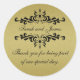 Gold Glitter Look Wedding Favour Thank You Label. Elegant black swirls and script font text you can customise with bride and groom names and your wedding thank you message. Perfect label for your wedding favours