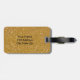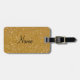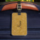 Gold glitter luggage tag with faux shiny glimmers. Personalizable name for men women and kids. Sparkly design with fake glimmering sparkles. Luxury golden texture design for chic rich travel bags. Luxurious background and script typography.