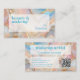 This business card features a stunning opal blush pink, aqua blue, and glamourous gold marble quartz art pattern. Its elegant and eye-catching design is perfect for professionals in the beauty industry, showcasing your style and creativity. With its high-quality print and durable cardstock, this business card is sure to leave a lasting impression on your clients. Stand out from the crowd and make a statement with this stylish and classy business card.