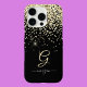 Gold Glitter & Monogram White Script Name on Black Case-Mate iPhone Case