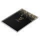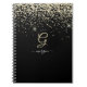 Gold Glitter & Monogram White Script Name on Black Notebook